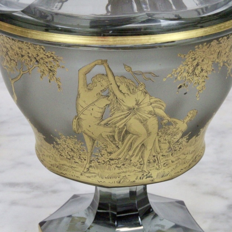Superbe drageoir en cristal orné d’une très belle scène mythologique.
