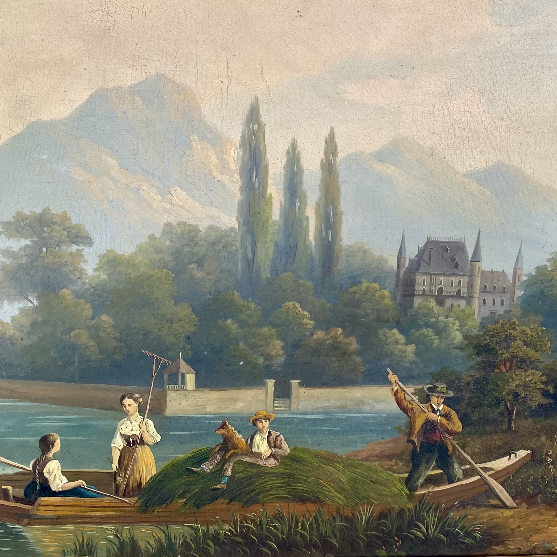 D’époques XIXème représentant un couples de paysans embarquant sur une barque.