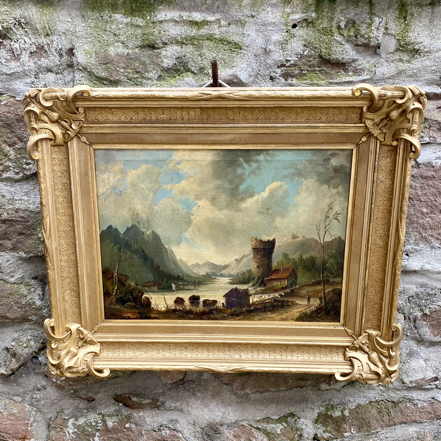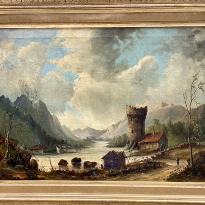 Peinture XIXème représentants un paysage suisse.